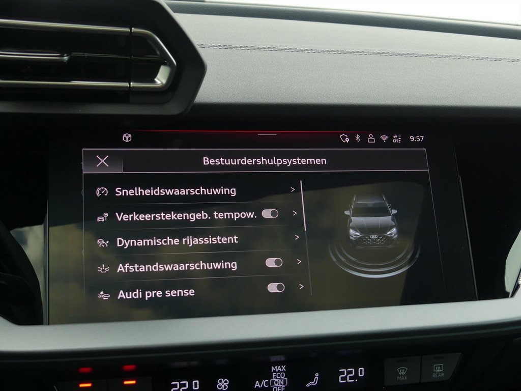 Geavanceerde technische systemen houden tijdens elke rit het verkeer in de gaten en reageren op potentieel gevaarlijke situaties. Dat de auto steeds meer taken van de bestuurder overneemt, merkt u bijvoorbeeld aan het systeem voor verkeersbord-detectie in deze Audi. Vermoeidheidsherkenning is een systeem dat met verschillende sensoren tekenen van vermoeidheid bij de chauffeur waarneemt. Deze krijgt tijdig een waarschuwing, wat ongelukken kan voorkomen. Lane assist waarschuwt als u onbedoeld van rijbaan wisselt. Bovenop deze veiligheidsfeatures heeft deze Audi bovendien front assist en bandenspanningcontrolesysteem.