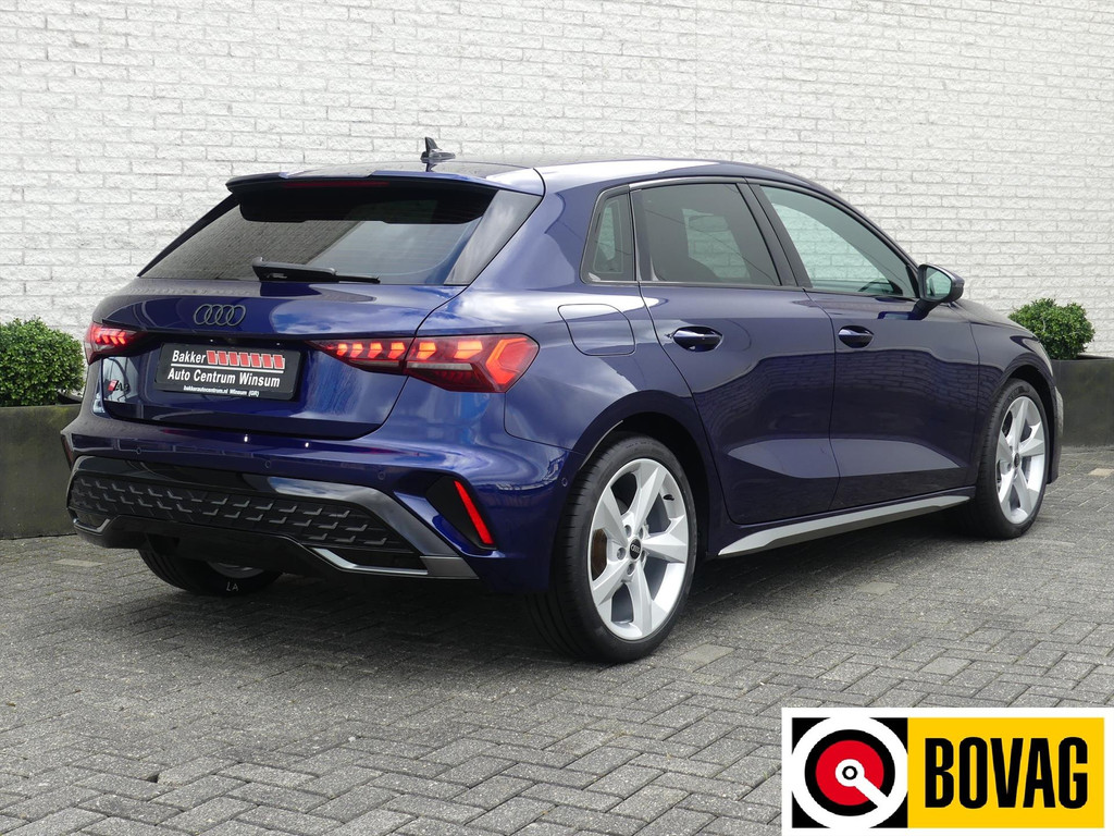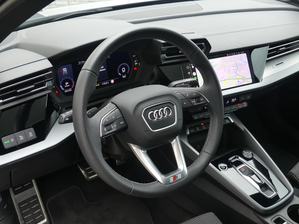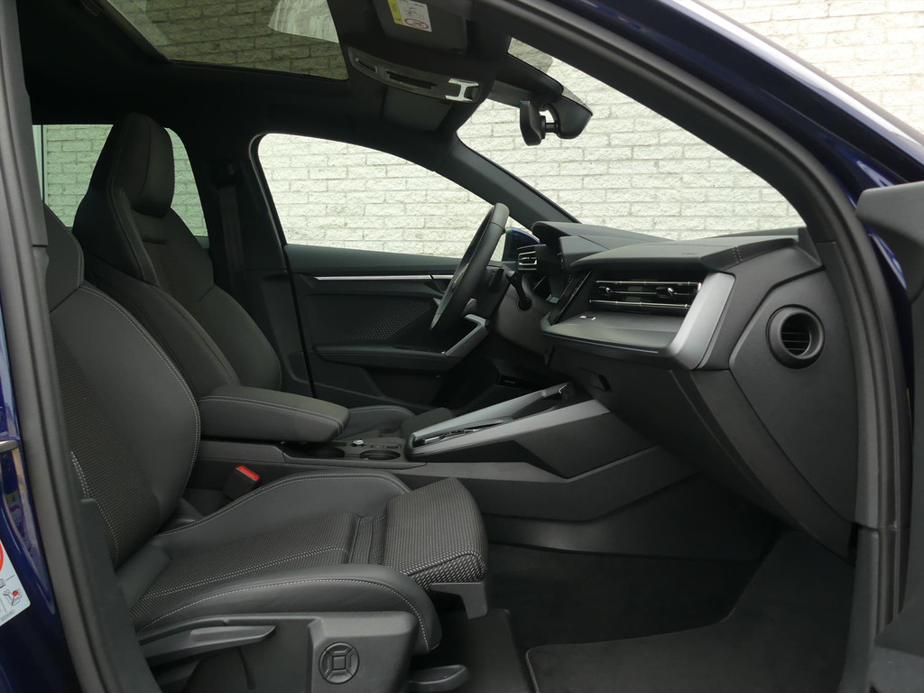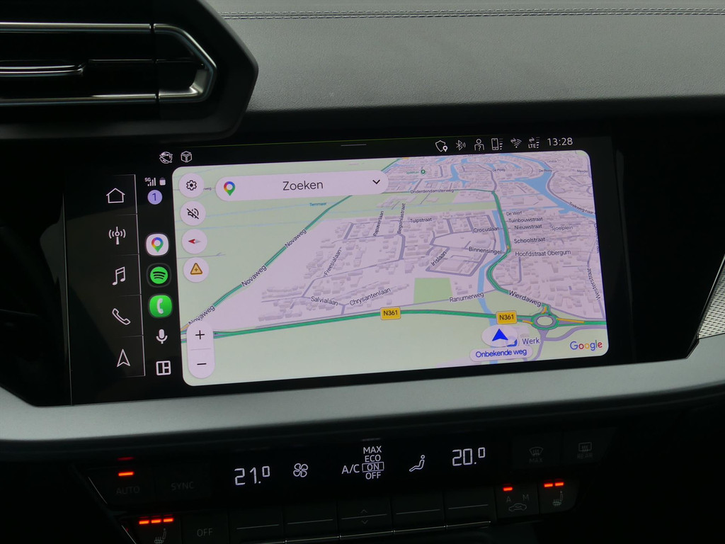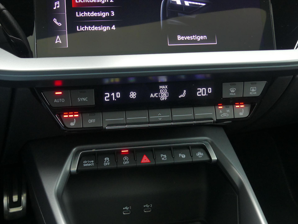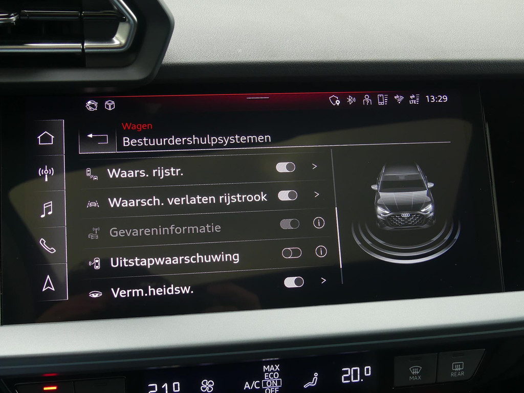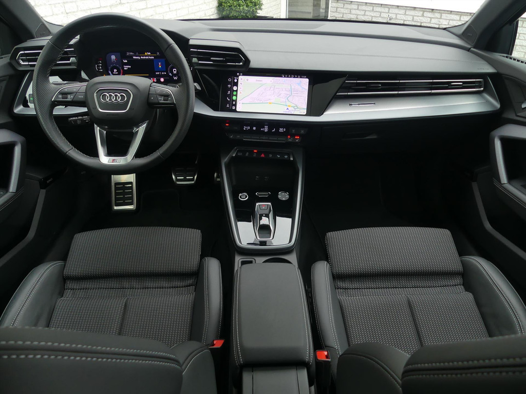 Strakke lijnen en klassieke vormen die evenwichtig zijn geproportioneerd: de Audi A3 is een stijlvolle en markante verschijning op de weg. Zijn krachtige en zuinige benzinemotor (150 Pk) en doordachte onderstel maken bovendien alle verwachtingen waar. Met zijn viercilinder benzinemotor en automatische transmissie S-Tronic 7-versnellingen is dit een prima auto voor nog vele kilometers. Ga samen met uw bijrijder lekker zitten in de verwarmbare voorstoelen. Mooi om te zien en heerlijk om in te zitten zijn de sportstoelen (bekleed met leder/stof), die u onderweg optimale ondersteuning geven. Tevens hebben ze een uitschuifbaar zitvlak en elektrische lendenverstelling. Het glazen panoramadak laat meer licht binnen in het interieur en zorgt voor een magnifiek uitzicht naar buiten, tevens is deze elektrisch te openen. Bij de zeer complete uitrusting van deze auto behoren ook 18 inch lichtmetalen velgen, Full matrix LED koplampen en achterlichten met dynamische knipperlichten, Audi instelbaar onderstel (Audi Drive Select), sportinterieur met zwarte hemelbekleding, S-Line instaplijsten en multifunctioneel lederen S-Line sportstuurwiel, bluetooth telefoonkoppeling, draadloze Apple Carplay & Android Auto, sfeerverlichting met instelbare kleuren, elektrisch inklapbare buitenspiegels met dode hoek detectie en donker getint glas achter.