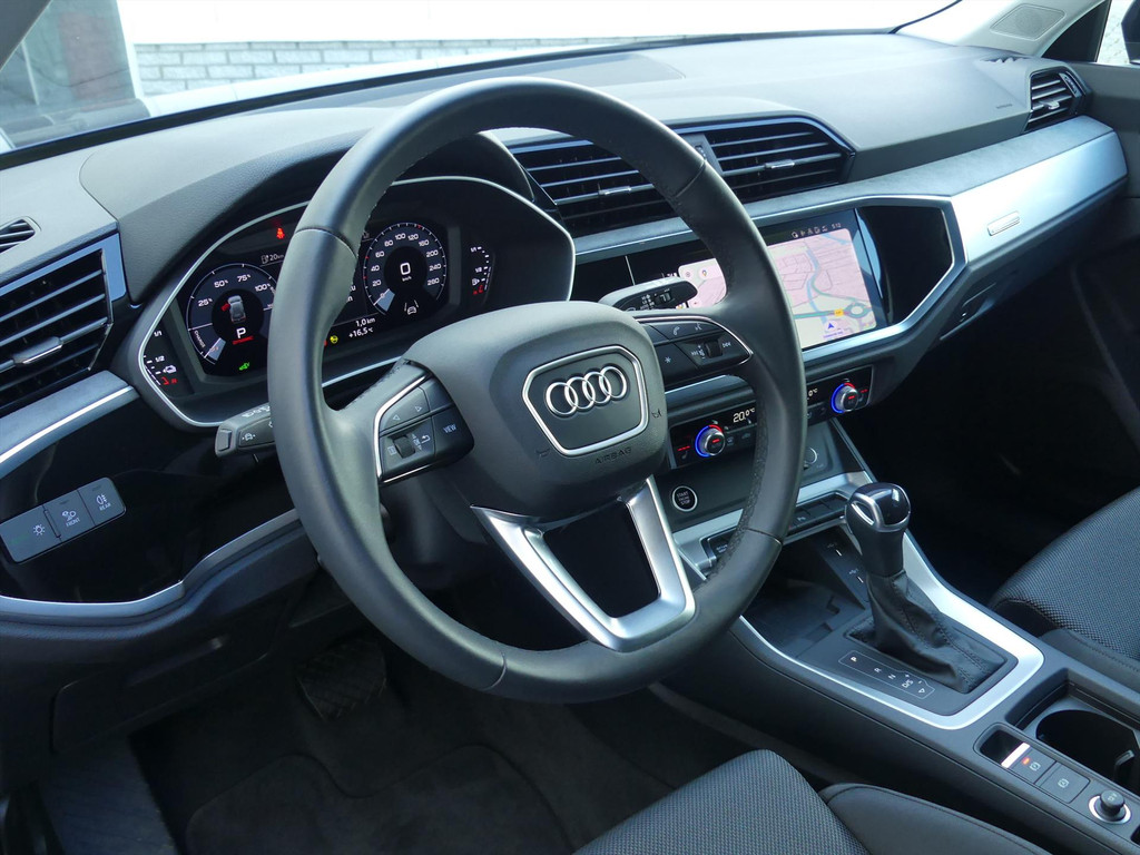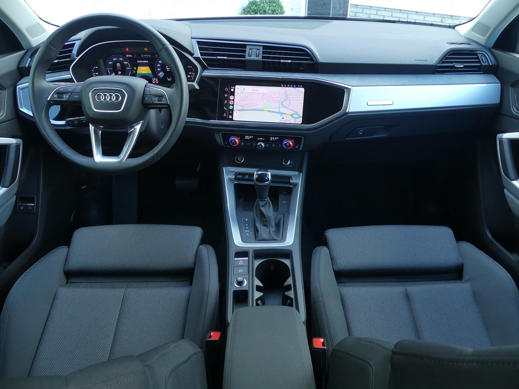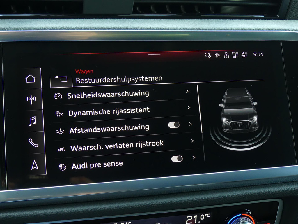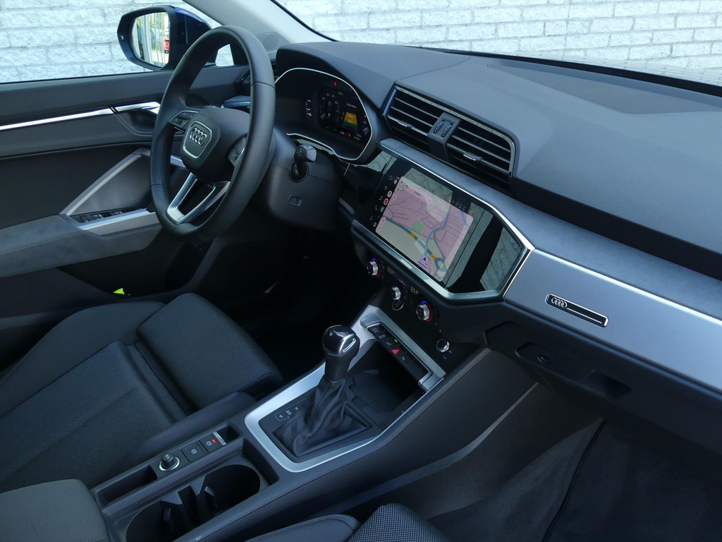 Het digitale dashboard (Audi Virtual Cockpit) ondersteunt u voortdurend met actuele, bruikbare informatie. Adaptive cruise control is veilig en comfortabel. De snelheidsregelaar houdt automatisch afstand tot het voertuig dat voor u rijdt. De bediening van het audiosysteem gebeurt met knoppen op het multifunctioneel lederen stuur. De audio is overigens voorzien van DAB-radio voor een altijd heldere ontvangst. Deze Audi Q3 is een complete auto anno nu, en dat merk je. Bijvoorbeeld door de aanwezige draadloze oplaadmogelijkheid voor telefoons. Met de climate control selecteert u de gewenste temperatuur. Het systeem doet de rest. Met parkeersensoren vóór en achter, regensensor, keyless entry met start/stop knop, buitentemperatuurmeter, automatisch dimmende binnenspiegel en centrale deurvergrendeling met afstandsbediening is deze Audi helemaal compleet.