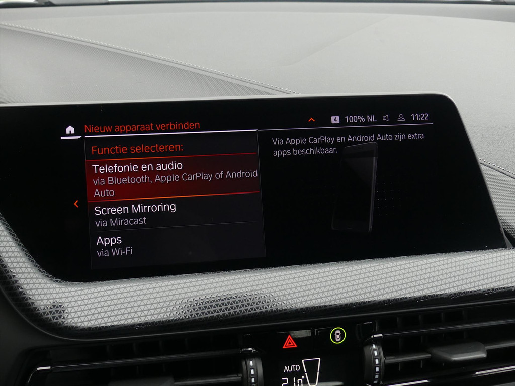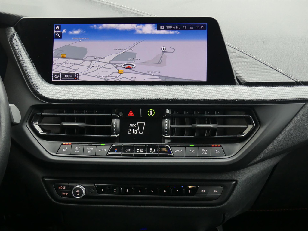 Hij is stijlvol en comfortabel, deze BMW 1-Serie High Executive, en hij is ontworpen om u veilig en comfortabel te laten rijden onder alle omstandigheden. In deze auto vindt u een krachtige en zuinige benzinemotor (136 Pk) en een automatische transmissie. Behaaglijk onderweg zijn? Als bestuurder geniet u van de verwarmbare voorstoelen bekleed met leder/stof en uitschuifbaar zitvlak. Net als uw bijrijder! De sportstoelen geven u veel zitsteun. Bij de uitrusting van deze auto horen onder meer Full LED koplampen en achterlichten, sfeerverlichting met instelbare kleuren, instelbare rij-profielen, dubbele laadbodem, getint glas, parkeersensoren vóór en achter, armsteun vóór, Apple Carplay & Android Auto, in delen neerklapbare achterbank en lichtmetalen velgen 17”.