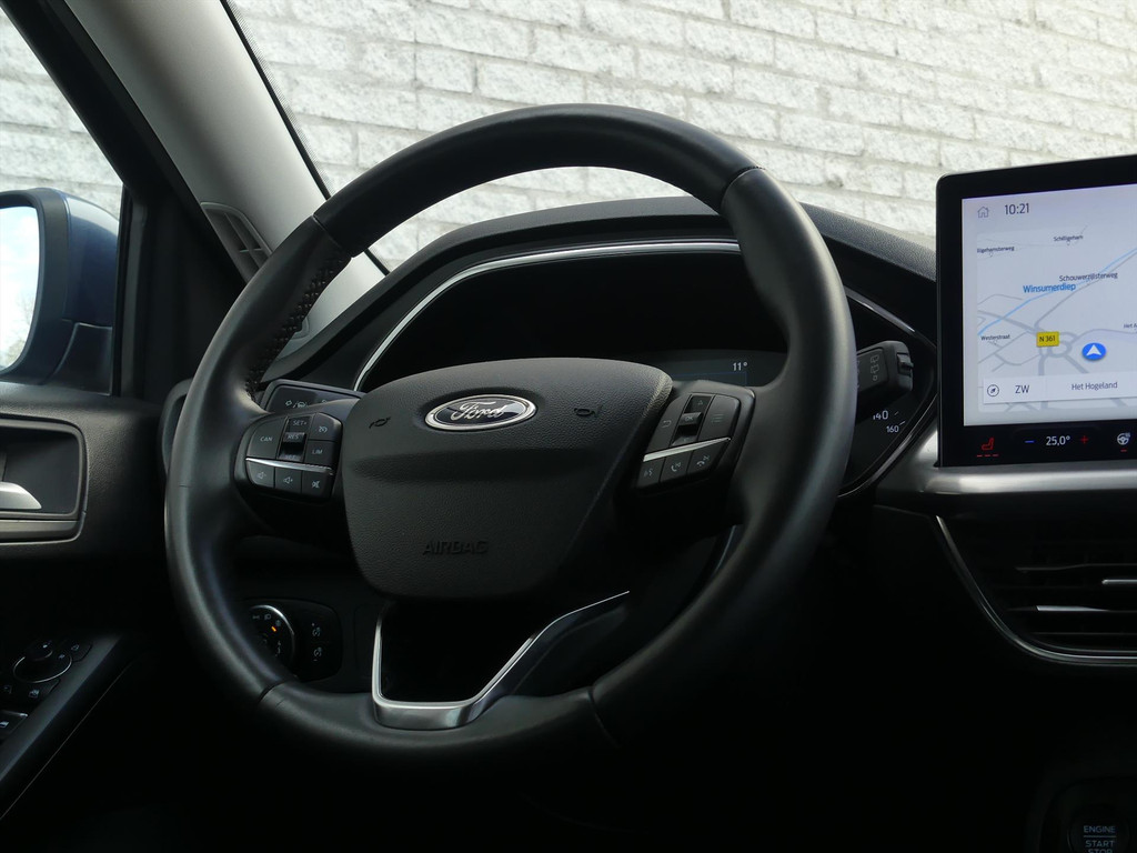 Ford heeft als motto ‘Go Further’. En dan bedoelen ze niet alleen in kilometers, maar ook in prestaties, techniek en vorm wil Ford vooroplopen. De aandrijving van deze Ford wordt verzorgd door een krachtige en zuinige mild hybride motor (125 Pk) en een handgeschakelde zes-versnellingsbak. Koude start? Niet met de verwarmbare voorstoelen, voorruitverwarming en stuurwielverwarming! Bij de zeer complete uitrusting van deze auto behoren ook 16 inch lichtmetalen velgen, Full LED koplampen en achterlichten, bluetooth telefoonkoppeling, Apple Carplay & Android Auto, armsteun vóór en achter warmtewerend glas, instelbare rij-profielen, in delen neerklapbare achterbank, privacy glas achter en elektrisch inklapbare buitenspiegels.