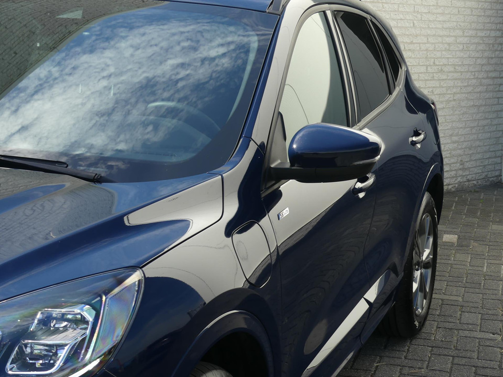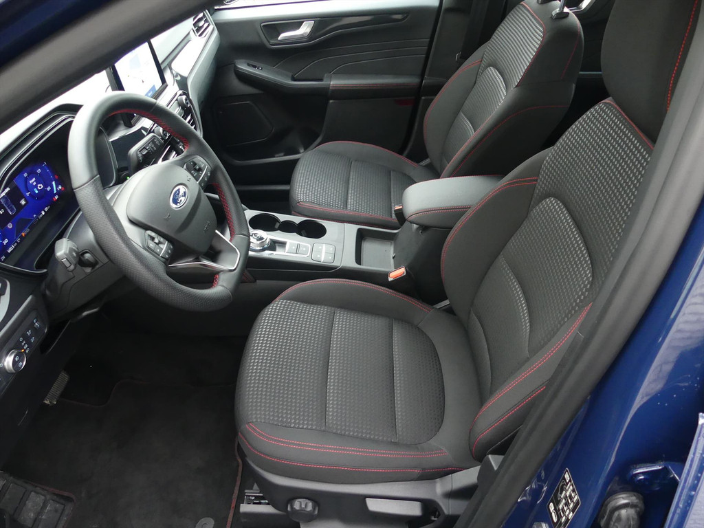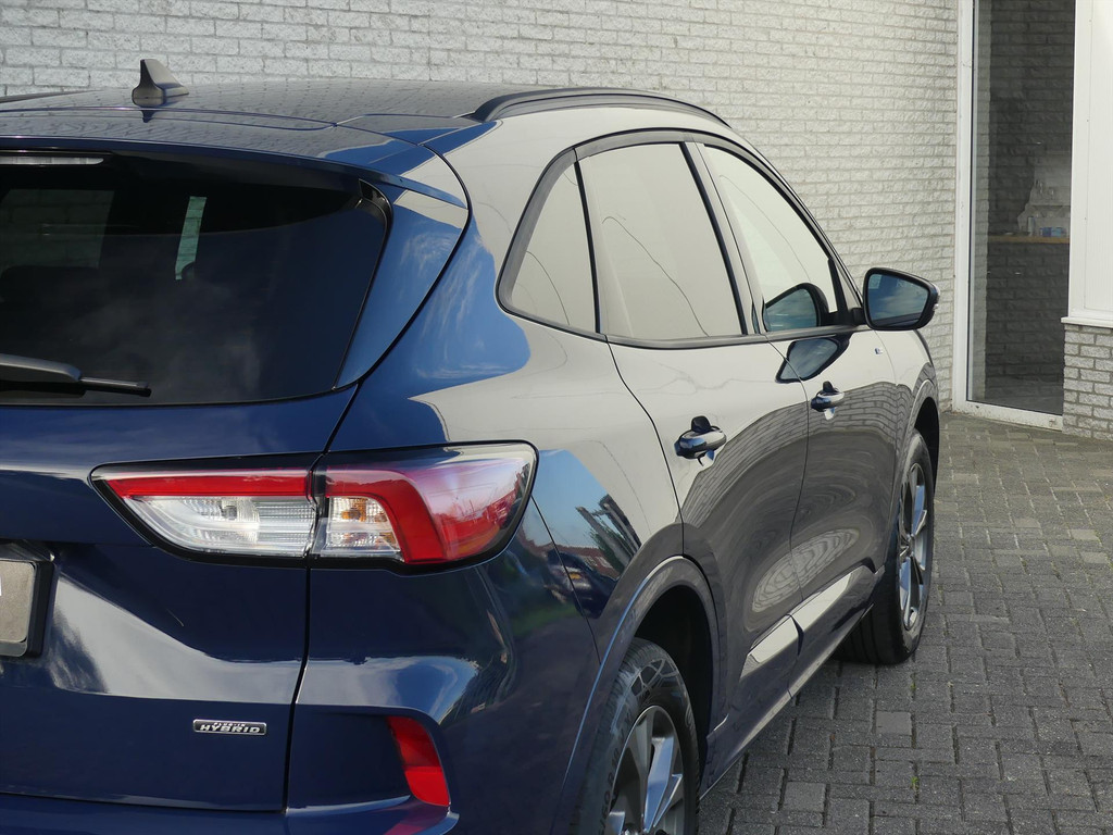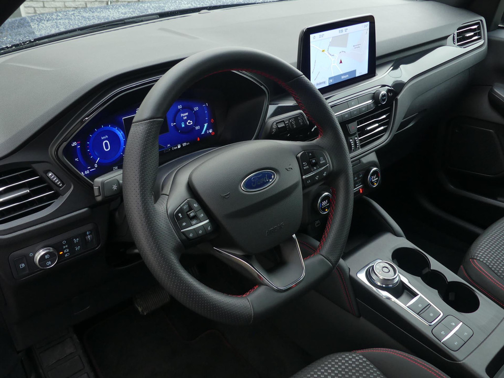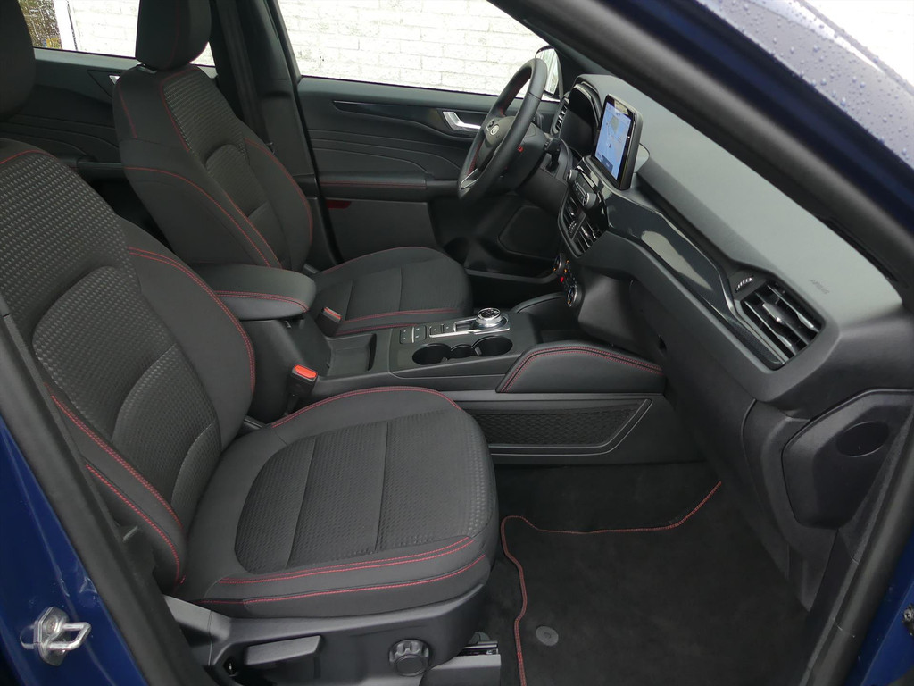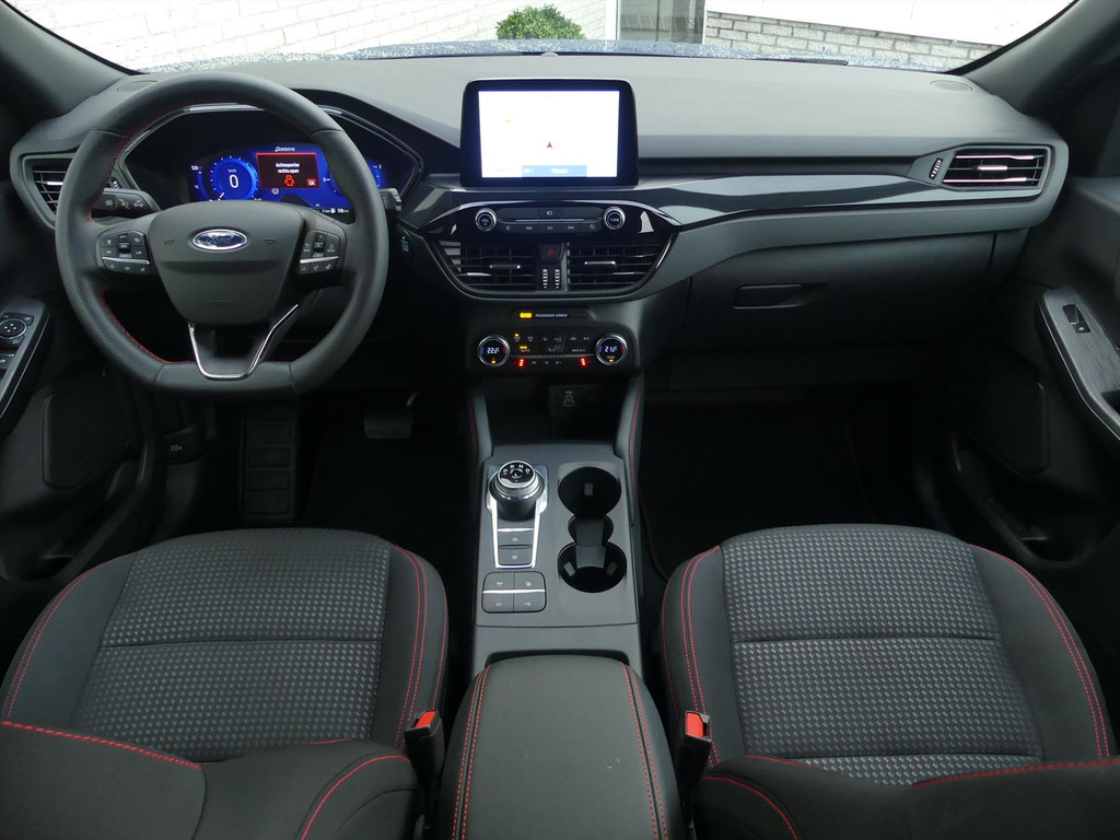 Go Further, zeggen ze bij Ford. En dat doen deze Kuga dan ook. Net wat verder in technologie en innovatie. Steeds een stapje meer. Het aantal kilometers dat u op een acculading kunt rijden, is ruimschoots genoeg voor de gangbare dagelijkse ritten, en het opladen kan in de meeste gevallen ’s nachts gebeuren. De aandrijving van deze Ford wordt verzorgd door een krachtige viercilinder motor en een elektromotor. Deze motoren zijn gekoppeld aan een automatische transmissie (8 versnellingen), deze zijn goed voor een gecombineerd vermogen van 225 Pk. De verwarmbare stoelen vóór zijn een weldaad voor rug en schouders. Ook lichtmetalen velgen 18 inch, instelbare rij-profielen, sportinterieur met sportstuurwiel (rode stiksels), sportstoelen (rode stiksels) en zwarte hemelbekleding, voorruitverwarming, volledig digitaal instrumentarium, donker getint glas achter, bluetooth telefoonkoppeling, Apple Carplay & Android Auto, full ledverlichting vóór en achter, keyless entry met start/stop knop, elektrisch bediende ramen, adaptieve cruise control, elektrisch bedienbare en verwarmde buitenspiegels (elektrisch inklapbaar met dode hoek detectie) en in delen neerklapbare achterbank zijn aan boord.