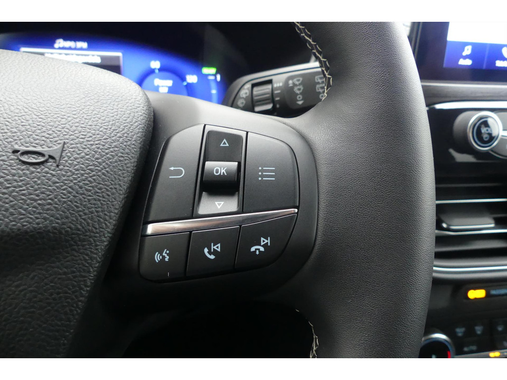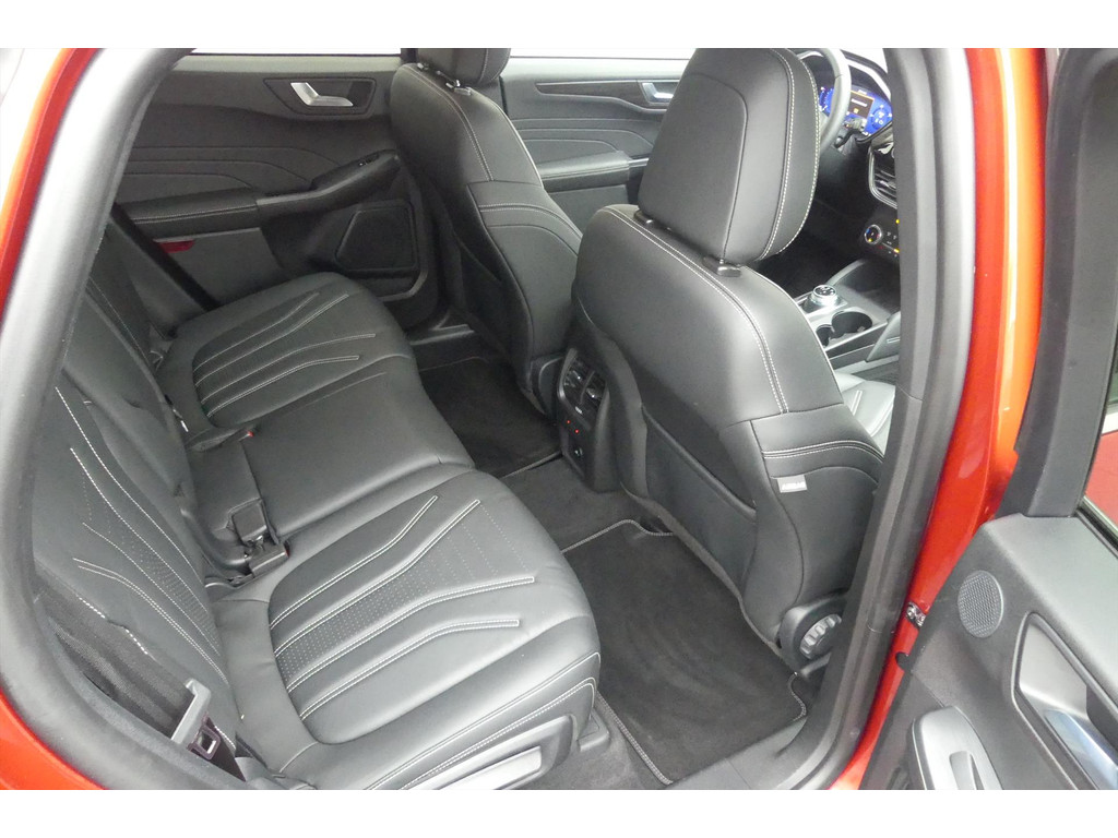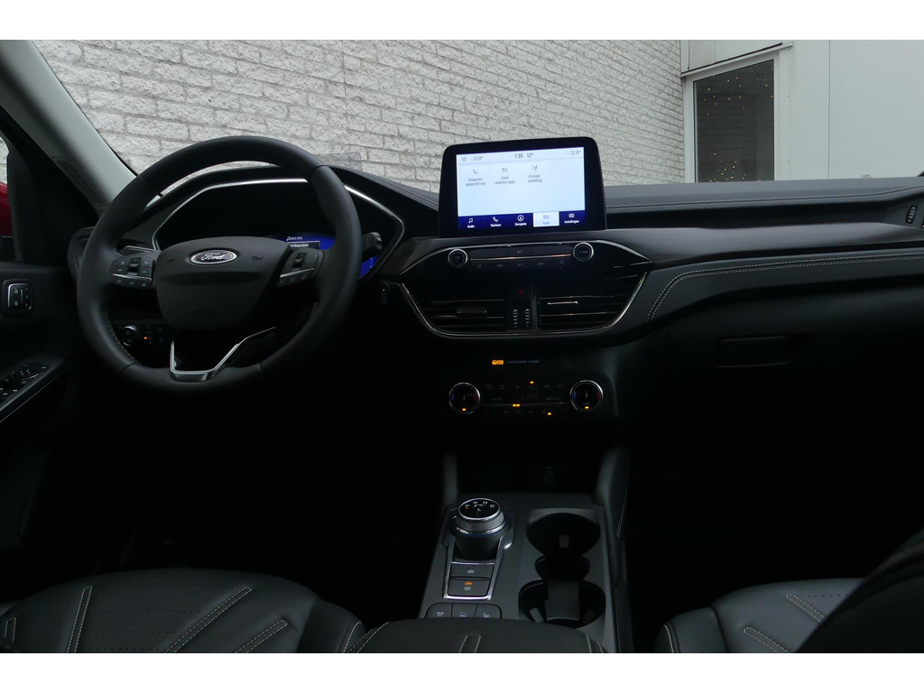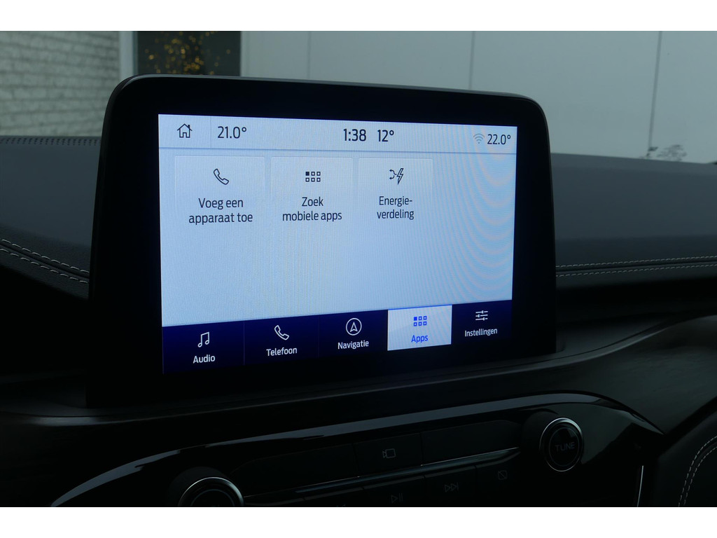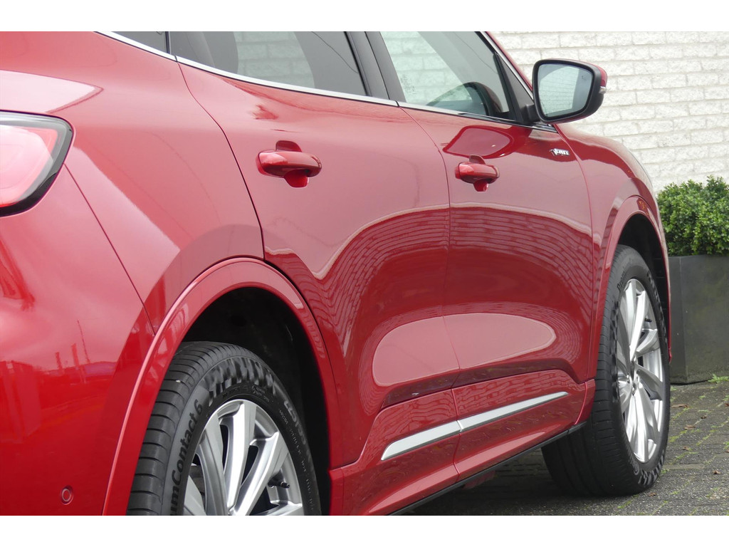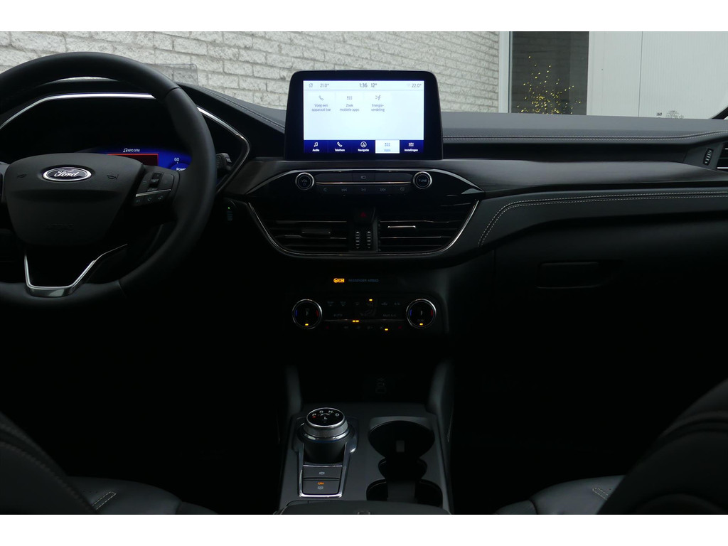 Go Further, zeggen ze bij Ford. En dat doen deze Kuga (Nieuw Model) dan ook. Net wat verder in technologie en innovatie. Steeds een stapje meer. Het aantal kilometers dat u op een acculading kunt rijden, is ruimschoots genoeg voor de gangbare dagelijkse ritten, en het opladen kan in de meeste gevallen ’s nachts gebeuren. De aandrijving van deze Ford wordt verzorgd door een krachtige viercilinder motor en een elektromotor. Deze motoren zijn gekoppeld aan een automatische transmissie (8 versnellingen), deze zijn goed voor een gecombineerd vermogen van 225 Pk. De verwarmbare stoelen vóór en achter zijn een weldaad voor rug en schouders, tevens is er stuurverwarming aanwezig (Winter Pack). Ook lichtmetalen velgen, elektrisch verstelbare bestuurdersstoel met memory functie, volledig lederen interieur, instelbare rij-profielen, premium audiosysteem Bang & Olufsen, elektrisch bedienbare achterklep (voetsensor gestuurd), elektrisch bedienbare voorstoelen, Head-up display, afneembare trekhaak (1.500 kg geremd), voorruitverwarming, volledig digitaal instrumentarium, donker getint glas achter, bluetooth telefoonkoppeling, elektrisch bedienbare achterklap (voetsensor gestuurd), Apple Carplay & Android Auto, full ledverlichting vóór en achter, keyless entry met start/stop knop, elektrisch bediende ramen, adaptieve cruise control, elektrisch bedienbare en verwarmde buitenspiegels (elektrisch inklapbaar met dode hoek detectie) en in delen neerklapbare achterbank zijn aan boord.