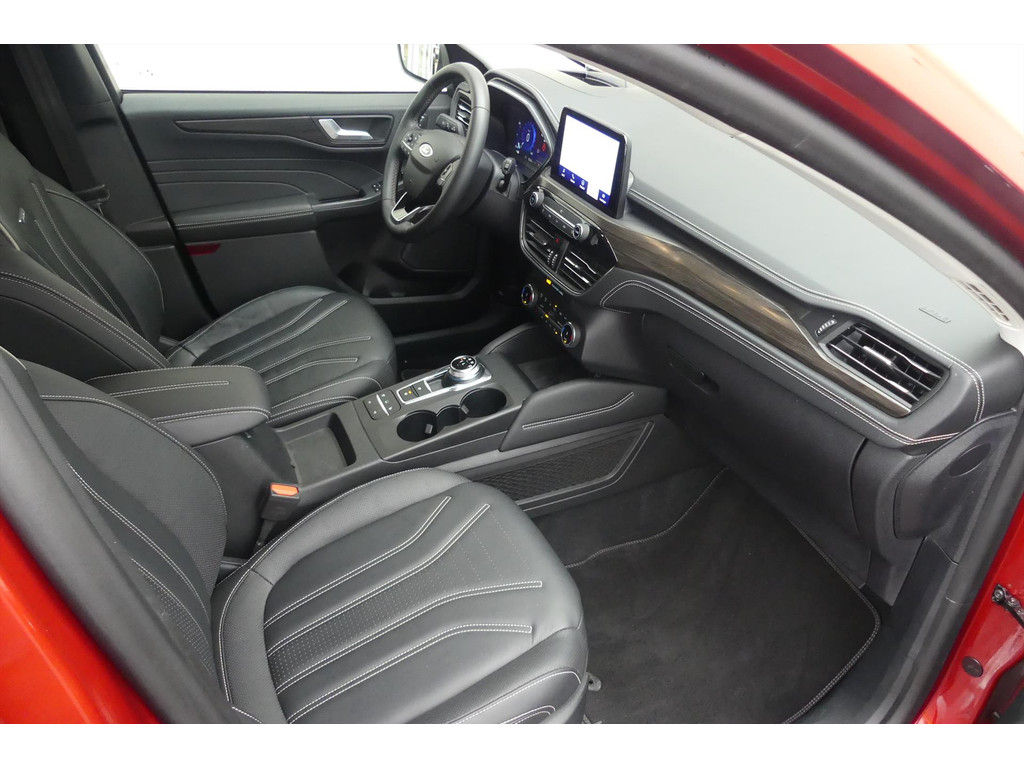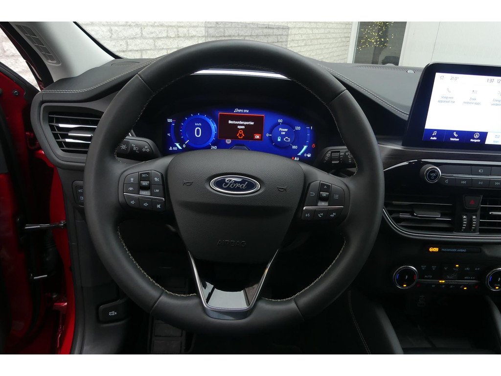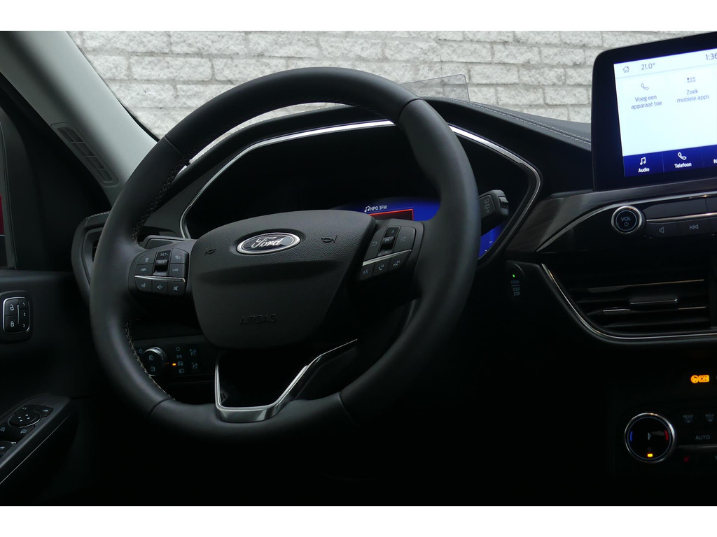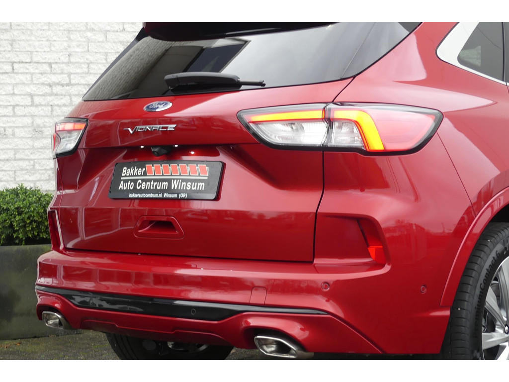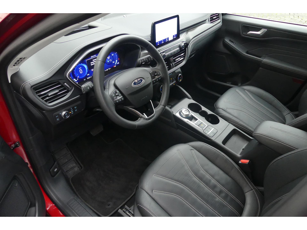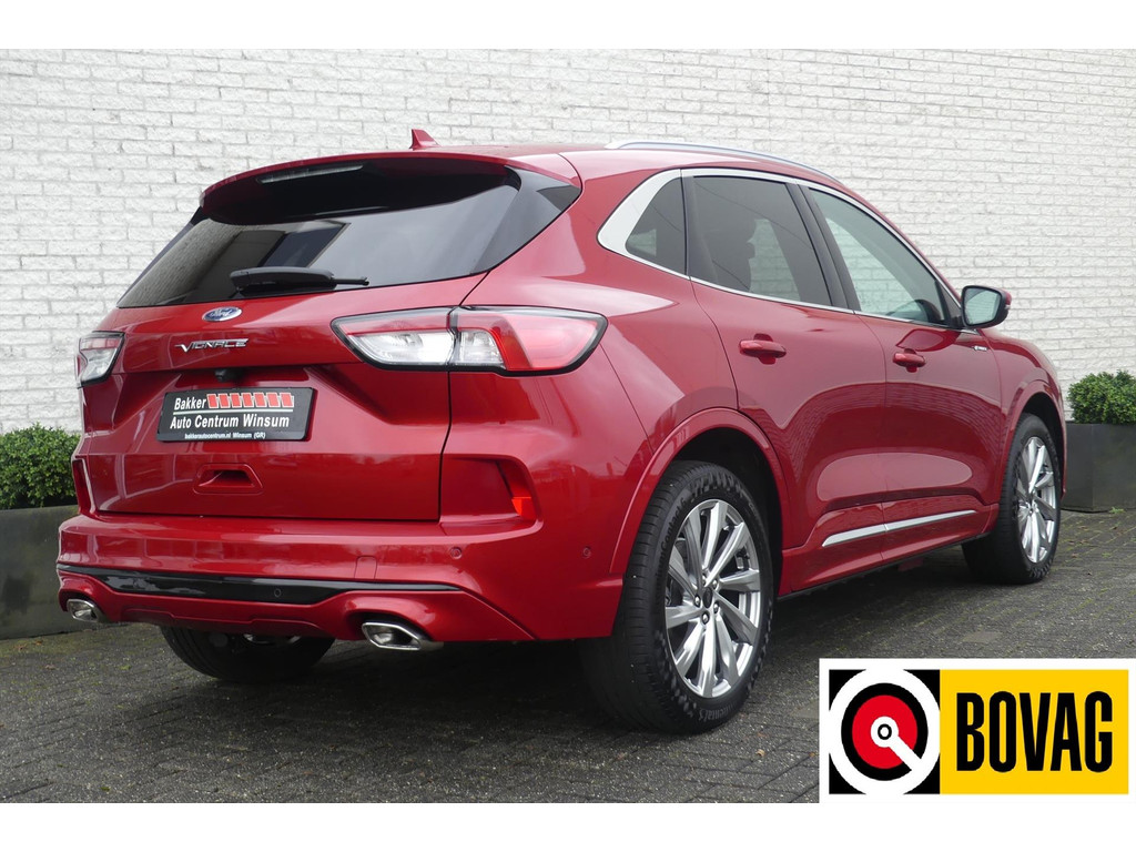 Go Further, zeggen ze bij Ford. En dat doen deze Kuga (Nieuw Model) dan ook. Net wat verder in technologie en innovatie. Steeds een stapje meer. Het aantal kilometers dat u op een acculading kunt rijden, is ruimschoots genoeg voor de gangbare dagelijkse ritten, en het opladen kan in de meeste gevallen ’s nachts gebeuren. De aandrijving van deze Ford wordt verzorgd door een krachtige viercilinder motor en een elektromotor. Deze motoren zijn gekoppeld aan een automatische transmissie (8 versnellingen), deze zijn goed voor een gecombineerd vermogen van 225 Pk. De verwarmbare stoelen vóór en achter zijn een weldaad voor rug en schouders, tevens is er stuurverwarming aanwezig (Winter Pack). Ook lichtmetalen velgen, elektrisch verstelbare bestuurdersstoel met memory functie, volledig lederen interieur, instelbare rij-profielen, premium audiosysteem Bang & Olufsen, elektrisch bedienbare achterklep (voetsensor gestuurd), elektrisch bedienbare voorstoelen, Head-up display, afneembare trekhaak (1.500 kg geremd), voorruitverwarming, volledig digitaal instrumentarium, donker getint glas achter, bluetooth telefoonkoppeling, elektrisch bedienbare achterklap (voetsensor gestuurd), Apple Carplay & Android Auto, full ledverlichting vóór en achter, keyless entry met start/stop knop, elektrisch bediende ramen, adaptieve cruise control, elektrisch bedienbare en verwarmde buitenspiegels (elektrisch inklapbaar met dode hoek detectie) en in delen neerklapbare achterbank zijn aan boord.