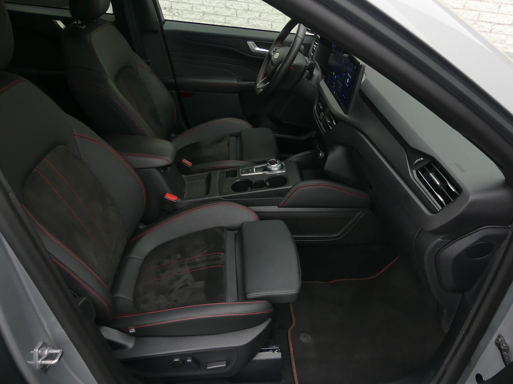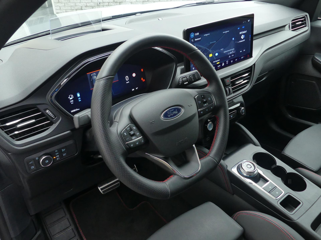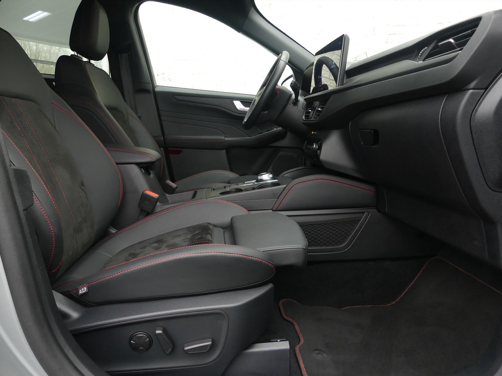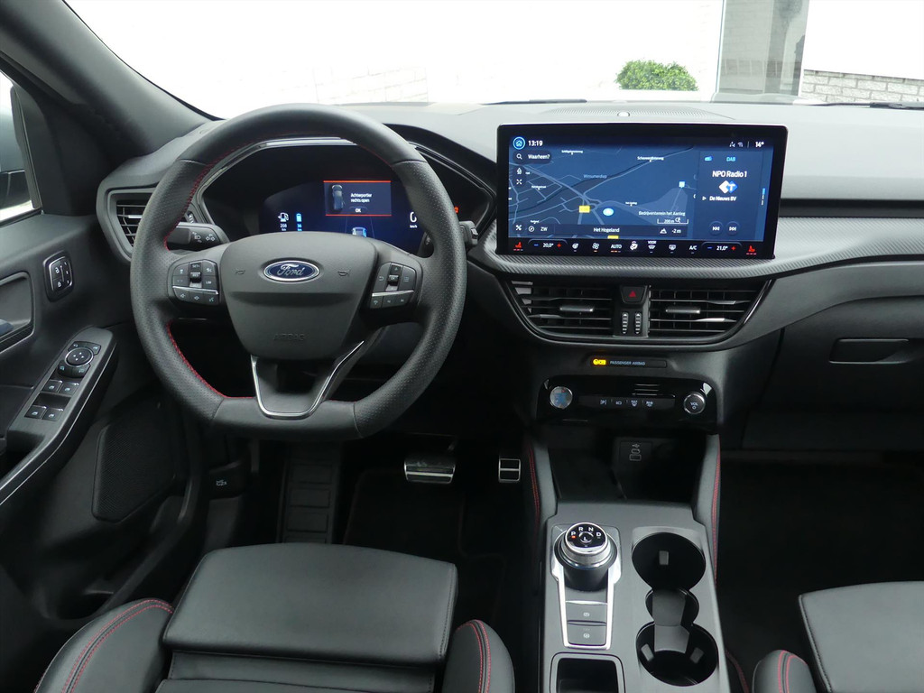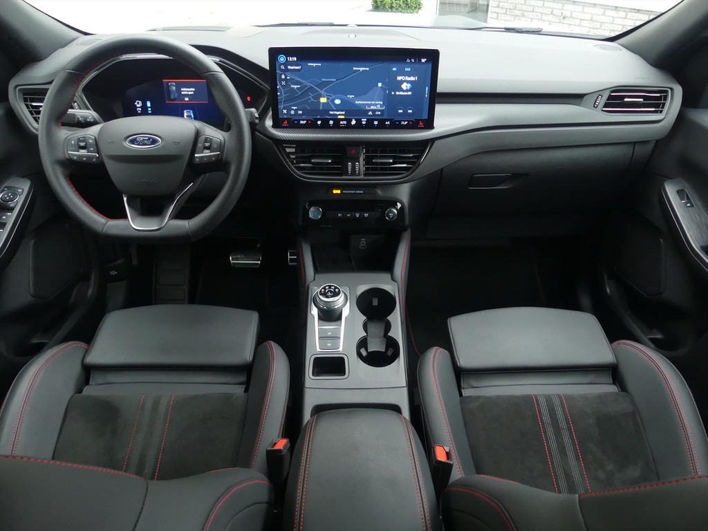 Go Further, zeggen ze bij Ford. En dat doen deze Kuga (Nieuw Model) dan ook. Net wat verder in technologie en innovatie. Steeds een stapje meer. Het aantal kilometers dat u op een acculading kunt rijden, is ruimschoots genoeg voor de gangbare dagelijkse ritten, en het opladen kan in de meeste gevallen ’s nachts gebeuren. De aandrijving van deze Ford wordt verzorgd door een krachtige viercilinder motor en een elektromotor. Deze motoren zijn gekoppeld aan een automatische transmissie (8 versnellingen), deze zijn goed voor een gecombineerd vermogen van 243 Pk. De verwarmbare stoelen vóór en achter zijn een weldaad voor rug en schouders, tevens is er stuurverwarming aanwezig (Winter Pack). Ook lichtmetalen velgen 18 inch, Head-up display, elektrisch verstelbare voorstoelen met uitschuifbaar zitvlak, bekleding leder/alcantara, elektrisch verstelbare bestuurdersstoel met geheugenfunctie, instelbare rij-profielen, sportinterieur met sportstuurwiel (rode stiksels), sportstoelen (rode stiksels) en zwarte hemelbekleding, voorruitverwarming, volledig digitaal instrumentarium, donker getint glas achter, bluetooth telefoonkoppeling, Apple Carplay & Android Auto, full ledverlichting, keyless entry met start/stop knop, elektrisch bediende ramen, adaptieve cruise control, elektrisch bedienbare en verwarmde buitenspiegels (elektrisch inklapbaar met dode hoek detectie) en in delen neerklapbare achterbank zijn aan boord.