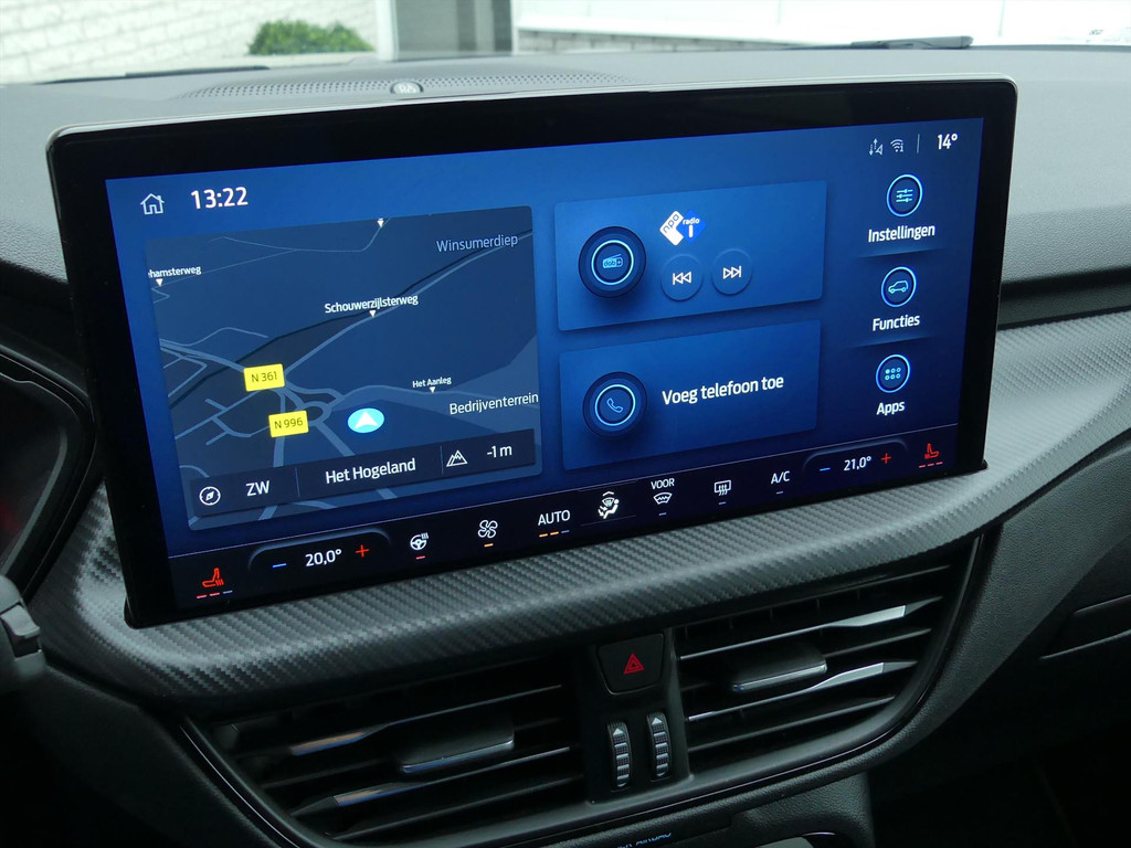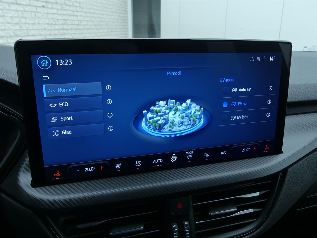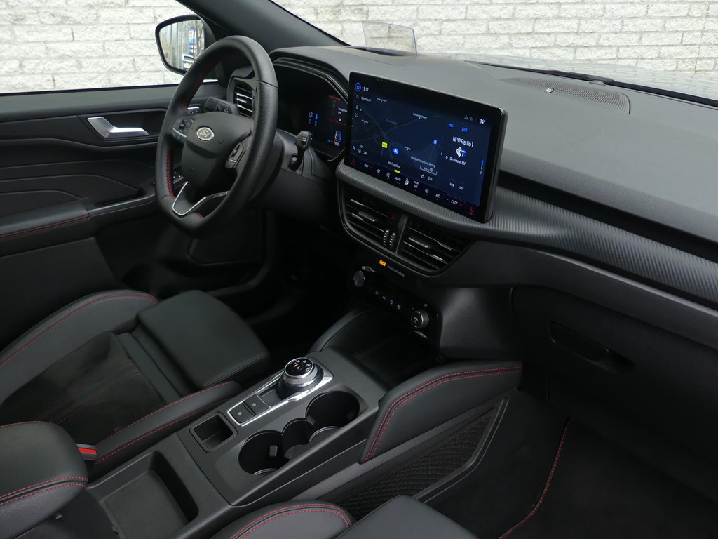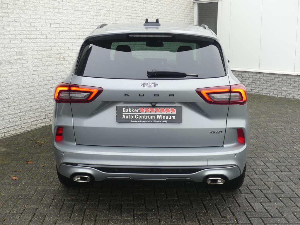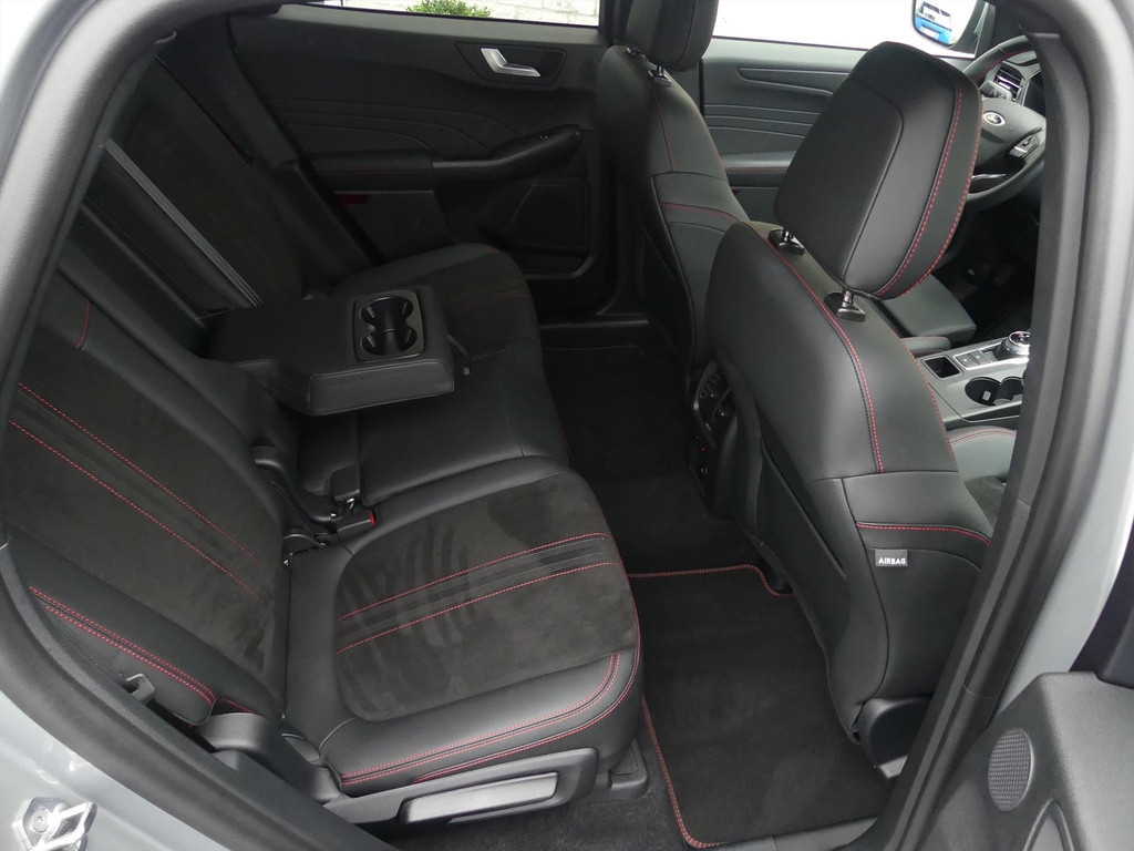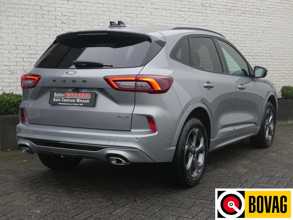 Go Further, zeggen ze bij Ford. En dat doen deze Kuga (Nieuw Model) dan ook. Net wat verder in technologie en innovatie. Steeds een stapje meer. Het aantal kilometers dat u op een acculading kunt rijden, is ruimschoots genoeg voor de gangbare dagelijkse ritten, en het opladen kan in de meeste gevallen ’s nachts gebeuren. De aandrijving van deze Ford wordt verzorgd door een krachtige viercilinder motor en een elektromotor. Deze motoren zijn gekoppeld aan een automatische transmissie (8 versnellingen), deze zijn goed voor een gecombineerd vermogen van 243 Pk. De verwarmbare stoelen vóór en achter zijn een weldaad voor rug en schouders, tevens is er stuurverwarming aanwezig (Winter Pack). Ook lichtmetalen velgen 18 inch, Head-up display, elektrisch verstelbare voorstoelen met uitschuifbaar zitvlak, bekleding leder/alcantara, elektrisch verstelbare bestuurdersstoel met geheugenfunctie, instelbare rij-profielen, sportinterieur met sportstuurwiel (rode stiksels), sportstoelen (rode stiksels) en zwarte hemelbekleding, voorruitverwarming, volledig digitaal instrumentarium, donker getint glas achter, bluetooth telefoonkoppeling, Apple Carplay & Android Auto, full ledverlichting, keyless entry met start/stop knop, elektrisch bediende ramen, adaptieve cruise control, elektrisch bedienbare en verwarmde buitenspiegels (elektrisch inklapbaar met dode hoek detectie) en in delen neerklapbare achterbank zijn aan boord.