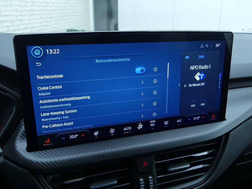 In deze auto zijn verschillende technologieën aanwezig die voor u het verkeer en de omgeving in de gaten houden en die desnoods ook kunnen remmen of bijsturen. Dat de auto steeds meer taken van de bestuurder overneemt, merkt u bijvoorbeeld aan het systeem voor verkeersbord-detectie in deze Ford. Als veilige optie heeft deze Ford Kuga lane assist, die u binnen de lijnen van uw rijstrook houdt wanneer u even niet oplet.