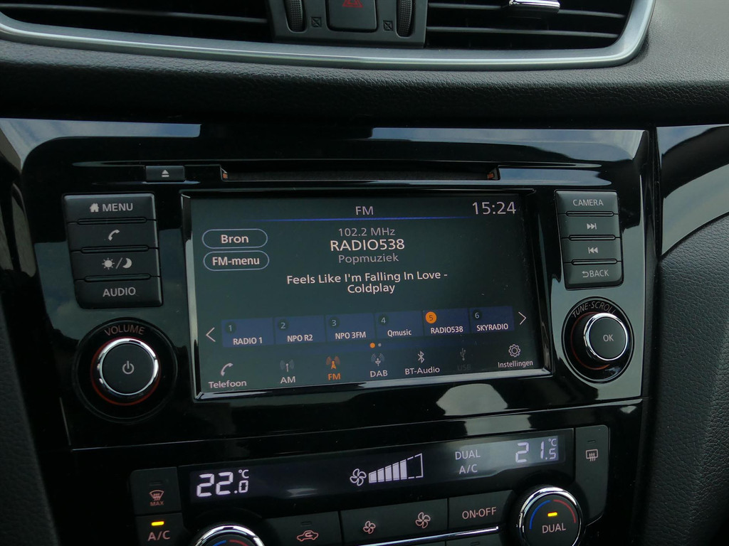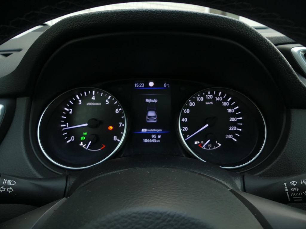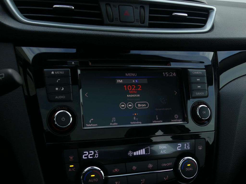 De nieuwste veiligheidssystemen komen in deze Nissan Qashqai samen. Onderweg fungeert de verkeersbord-detectie als het ware als uw bijrijder en attendeert u op de verkeersborden langs de weg. Vermoeidsheidsherkenning herkent tekenen van vermoeidheid bij de bestuurder. Het systeem voorkomt dat er ongelukken gebeuren doordat de bestuurder in slaap valt. De sensoren van de lane assist registreren de lijnen op de weg en waarschuwen als u onbedoeld in de andere strook dreigt te belanden. Met voorzieningen als front assist en bandenspanningcontrolesysteem, bent u altijd veilig onderweg.