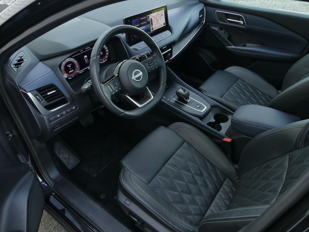 Over het digitale dashboard is goed nagedacht. Alle belangrijke functies binnen en buiten in één oogopslag. Ongelukken of parkeerschade? Dat gebeurt u niet meer, met de achteruitrijcamera. Adaptive cruise control is een comfortabele en veilige optie. Het systeem reguleert de snelheid en houdt automatisch afstand tot uw voorligger. Niet alleen heerlijk rijden maar ook subliem luisteren, dankzij het Bose audiosysteem. Zorgeloos en geconcentreerd rijden? Het navigatiesysteem wijst de weg! Deze Nissan is voorzien van Bose-audioinstallatie, climate control, audiobediening op het stuur, DAB ontvangst, regensensor en keyless entry.