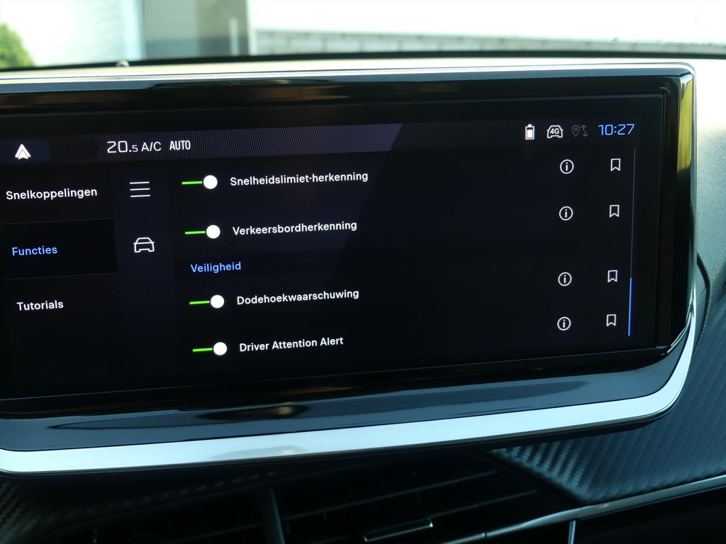 Zoals u mag verwachten van deze Peugeot 208 is hij uitgerust met een reeks aan actieve veiligheidssystemen. Dat de auto steeds meer taken van de bestuurder overneemt, merkt u bijvoorbeeld aan het systeem voor verkeersbord-detectie in deze Peugeot. Vermoeidsheidsherkenning neemt tekenen van vermoeidheid waar bij de bestuurder. Het systeem voorkomt dat er daardoor ongelukken gebeuren. Veiligheid voorop: sensoren van de lane assist scannen de rijstrookstrepen en waarschuwen als u onbedoeld over de lijn gaat. Verder is deze auto uitgerust met front assist en bandenspanningcontrolesysteem.