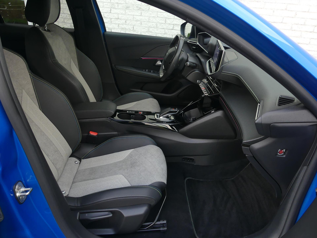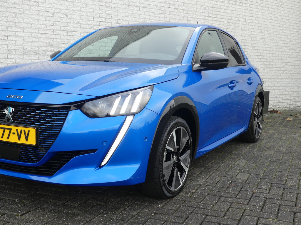 Hij levert uitstekende prestaties en doet dat met zorg voor het milieu. Maar tegelijk is deze originele Nederlandse Peugeot e-208 (afkomstig van de eerste eigenaar) ook gewoon een auto die u volop ruimte en comfort biedt. Dit is een auto uit het bouwjaar 2021, hij heeft 30969 kilometer gelopen en de auto is destijds nieuw door ons geleverd. Op een volle acculading kan deze auto de gebruikelijke dagelijkse ritten allemaal maken. Het opladen gaat eenvoudig aan een openbare laadpaal of aan uw eigen oplaadpunt thuis. Een weldaad voor u en uw bijrijder: deze Peugeot e-208 heeft verwarmbare voorstoelen. Bij de zeer complete uitrusting van deze auto behoren ook 17 inch lichtmetalen velgen, bekleding leder/alcantara, sportinterieur met zwarte hemelbekleding, multifunctioneel lederen sportstuur, sportstoelen en groene stiksels. Full LED koplampen en achterlichten, sfeerverlichting met instelbare kleuren, elektrisch inklapbare buitenspiegels met dode hoek detectie, instelbare rij-profielen, donker getint glas achter, in delen neerklapbare achterbank en armsteun vóór.