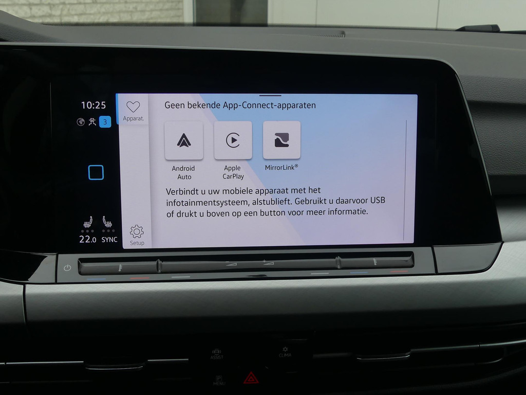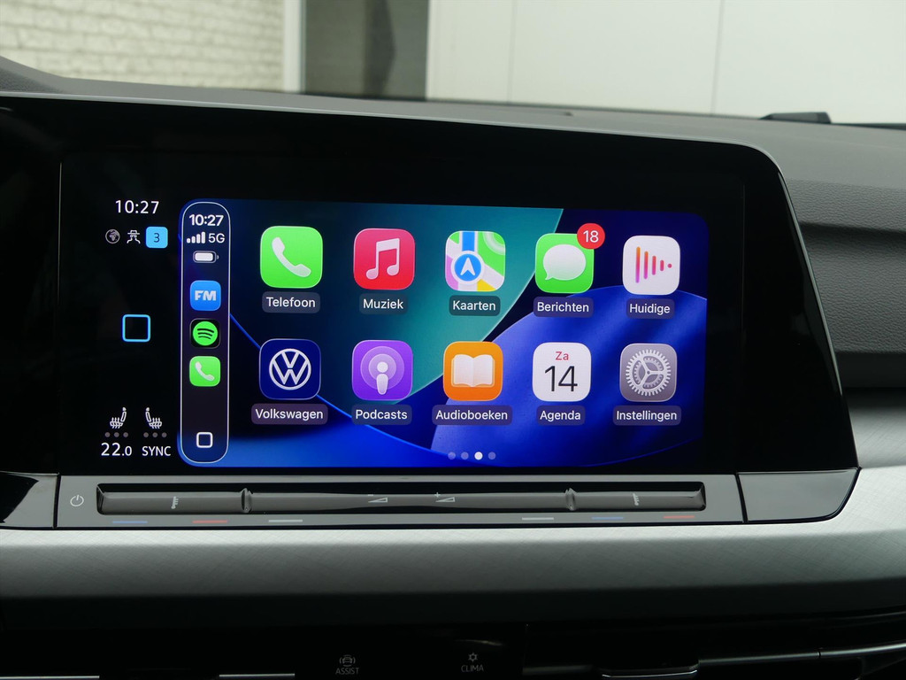 Het digitale dashboard rekent mee, denkt mee en rijdt mee. Alle info overzichtelijk in beeld, overal. Adaptive cruise control is een comfortabele en veilige optie. Het systeem reguleert de snelheid en houdt automatisch afstand tot uw voorligger. Een goede veiligheidsvoorziening is de stuurbediening voor belangrijke functies. Het audiosysteem biedt glasheldere geluidskwaliteit dankzij DAB-ontvangst. Telefoon onderweg aan de lader? Daar komt geen kabeltje aan te pas, want deze Volkswagen Golf is voorzien van een draadloze oplaadmogelijkheid voor telefoons. Nooit meer te warm of te koud. De climate control zorgt altijd voor de temperatuur die u kiest. Deze auto is voorzien van parkeersensoren vóór en achter, regensensor, buitentemperatuurmeter, automatisch dimmende binnenspiegel, centrale deurvergrendeling met afstandsbediening en toerenteller.