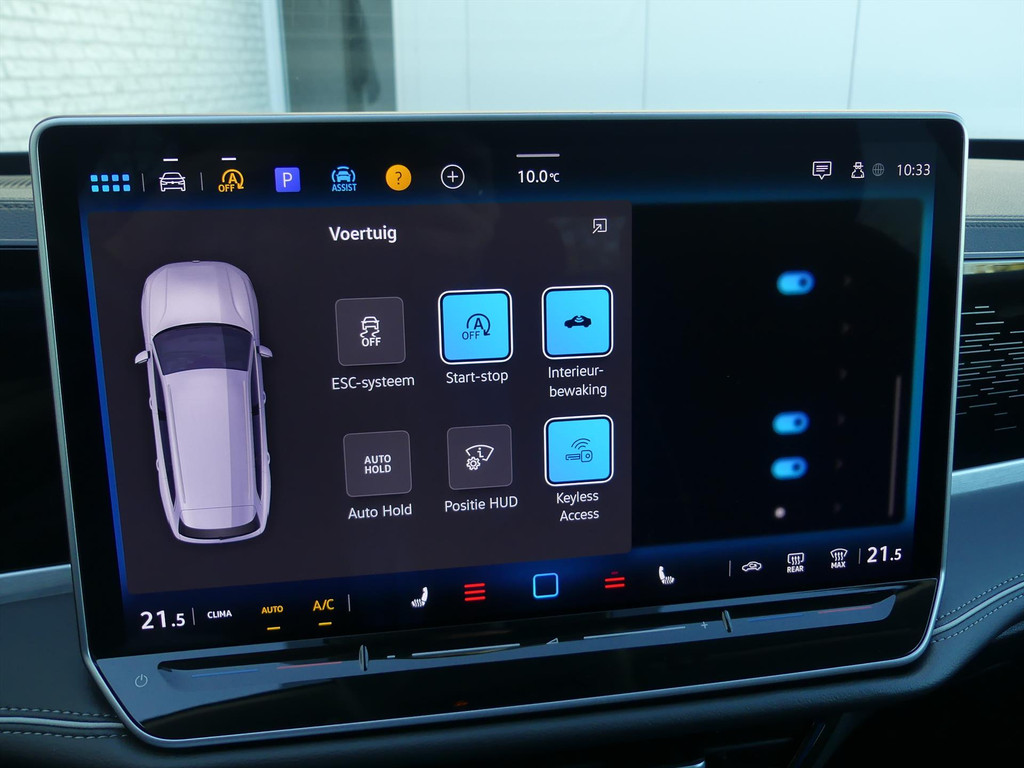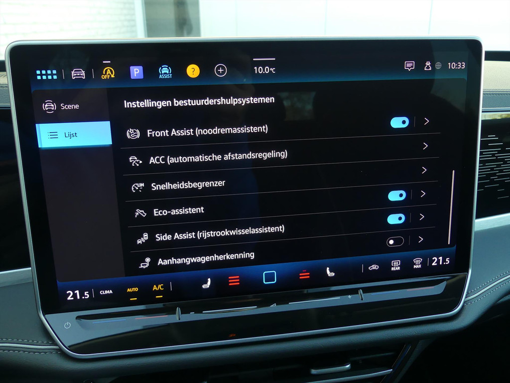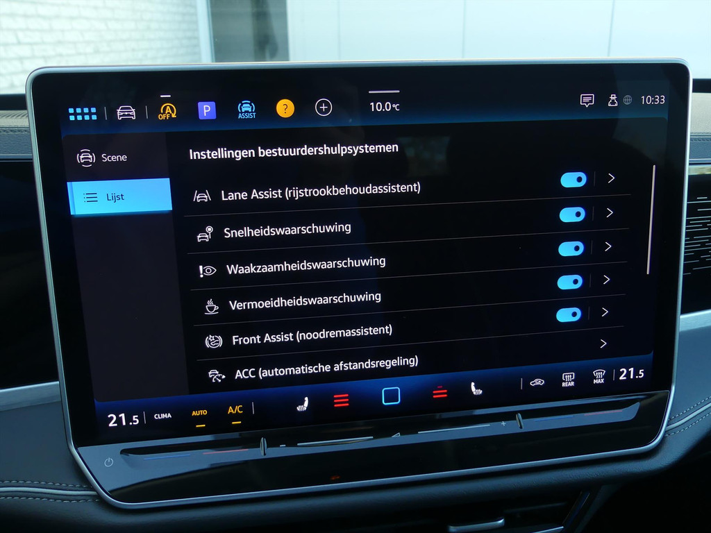 Een cockpit, een informatiecentrum… Wat is de cabine eigenlijk niet? Dankzij het digitale dashboard bent u van alles op de hoogte. Alles vrij achter? De achteruitrijcamera, automatische parkeerhulp en parkeersensoren laten het meteen zien. Adaptive cruise control houdt de ingestelde snelheid vast en houdt automatisch afstand tot uw voorligger. U kunt tijdens de rit uw ogen steeds op de weg houden, want het audiosysteem (met dab!) en het navigatiesysteem kunt u bedienen vanaf het multifunctioneel lederen stuur. De draadloze oplaadmogelijkheid voor telefoons voldoet aan de universele Qi-standaard. Elke geschikte smartphone is onderweg zonder snoeren en stekkers op te laden. En dan is deze auto ook nog eens voorzien van climate control, regensensor, keyless entry met start/stop knop, buitentemperatuurmeter, automatisch dimmende binnenspiegel en centrale deurvergrendeling met afstandsbediening.