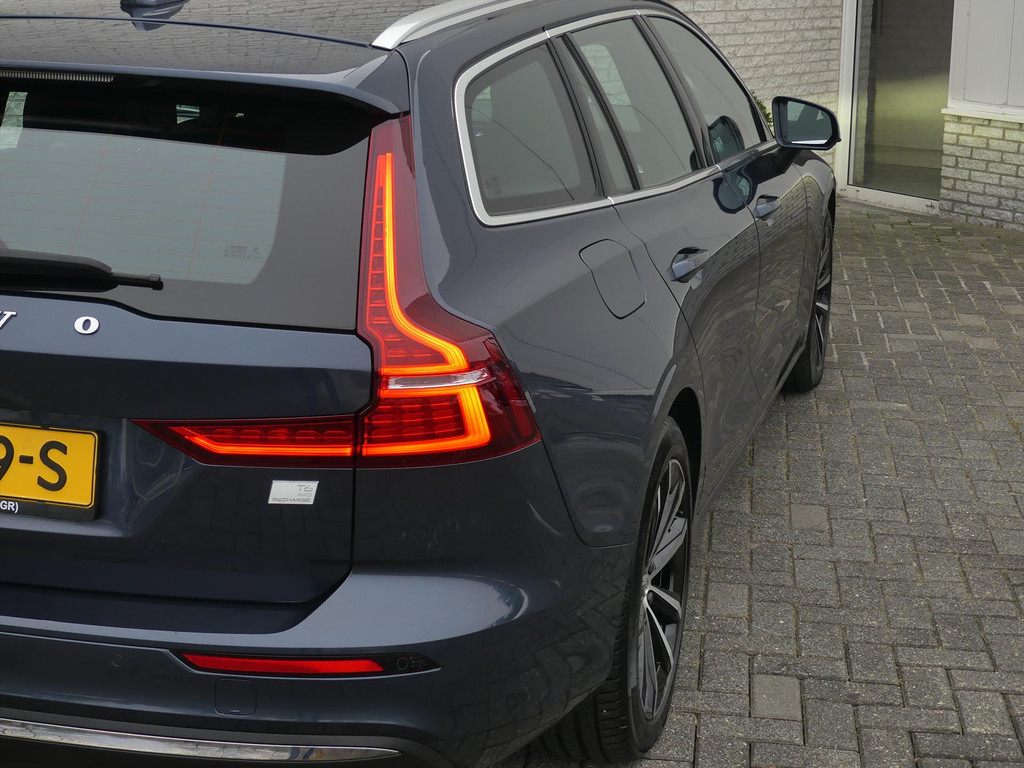 Bij deze piepjonge Volvo V60 is de nul net van de teller. Voor de rest eigenlijk nog zo nieuw als toen-ie van de band rolde. Deze hybride auto heeft een sterke, zuinige elektromotor én een verbrandingsmotor (398 Pk). Kortom: uitstekende rijprestaties en een veel lager brandstofgebruik. Tevens is deze auto vierwiel aangedreven. En wat heeft deze auto nog meer in petto? Om te beginnen zien we het lederen interieur, dat een sfeer van luxe meebrengt. Maar als u gaat voor gemak, wordt u ook niet teleurgesteld. Kijk eens naar die elektrisch bedienbare achterklep! Hoe koud het buiten ook is, de stoelverwarming geeft u meteen een behaaglijk gevoel. De uitmonstering van deze auto wordt gecompleteerd door onder meer Full LED koplampen en achterlichten, elektrisch verstelbare voorstoelen met memory functie, Apple Carplay & Android Auto, bluetooth telefoonkoppeling, armsteun vóór en achter, lichtmetalen velgen, warmtewerend glas, in delen neerklapbare achterbank, instelbare rij-profielen en elektrisch inklapbare buitenspiegels.